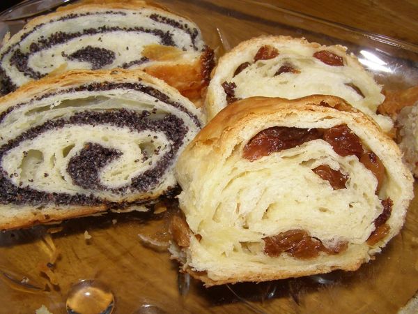 Tijesto kada nadodje razvaljajte u tanku plocu pospite sa izrendanim zamrznutim puterom. Uvijte u rolnu i podijelite na 4 dijela. Kroasan strudla sa duemom i cokoladom.