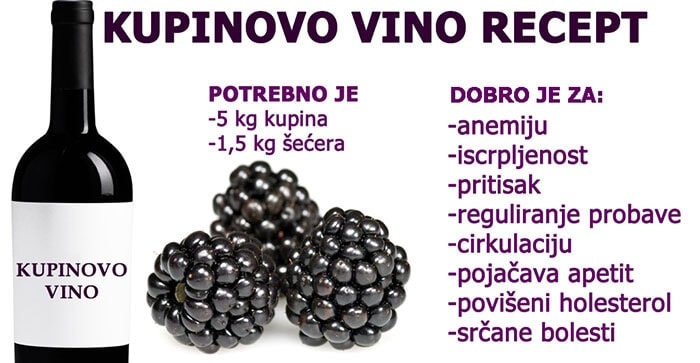 Kupinovo vino se pokazalo kao veoma dobar lijek za lijecenje anemije, za regulisanje probave, pritiska i cirkulacije, kod iscrpljenosti i neuhranjenosi.