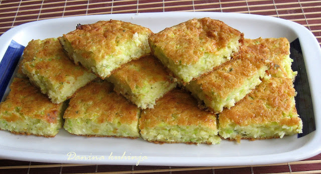 Crni luk sitno isjeckajte. U posudu stavite troje jaja umutite dodajte ulje, tikvice, crni luk, sjeckani persun, isitnjeni sir, kiselu pavlaku, griz, brasno, prasak za pecivo, so i mljeveni biber.