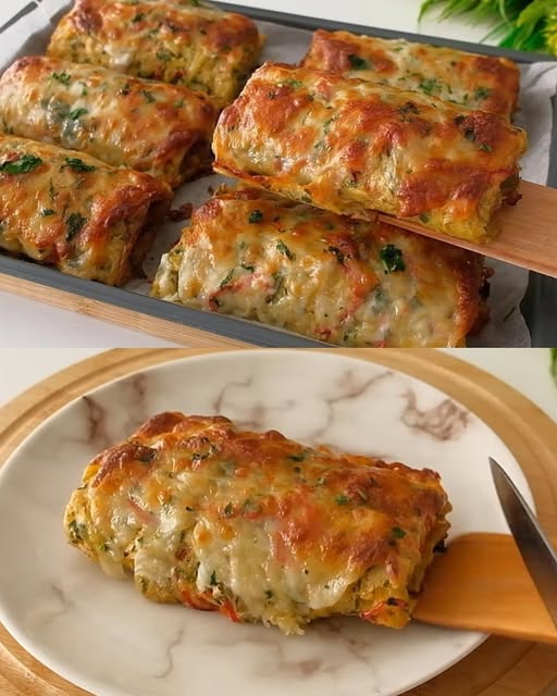 Rolnice složite na drugi pleh, ponovo pek papirom. Premažite ih pavlakom, pospite mladim lukom i peršunom, a zatim dodajte narendani dimljeni sir po vrhu svake. Vratite pleh u rernu i pecite dodatnih 10–15 minuta, dok sir ne porumeni i postane blago hrskav.