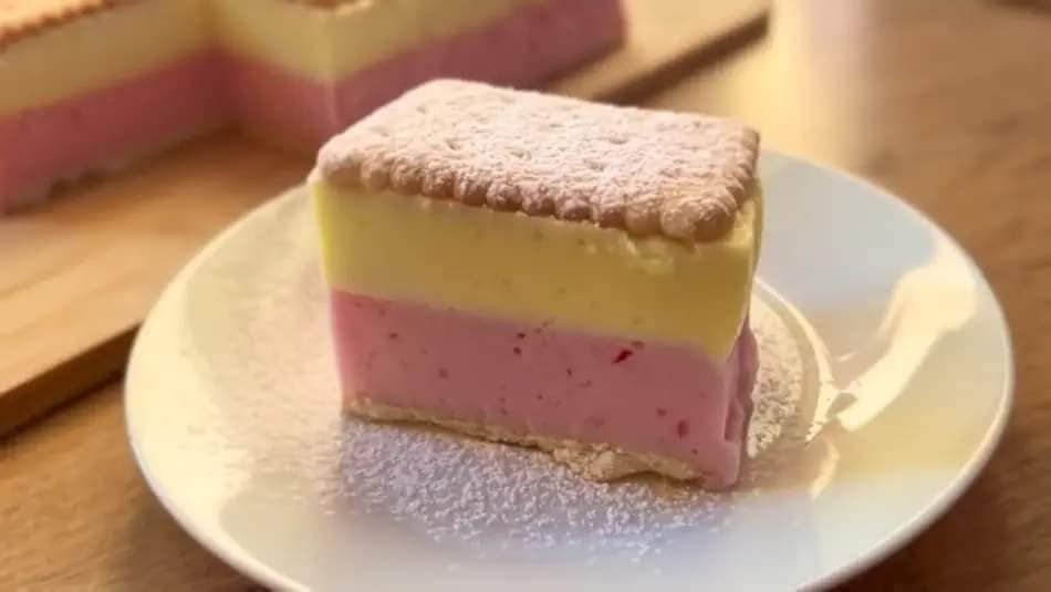 Pripremljenu smjesu dodajte preko rozog fila te preko poredajte petit keks. Ostavite u frizider na hladjenje jos sat vremena.