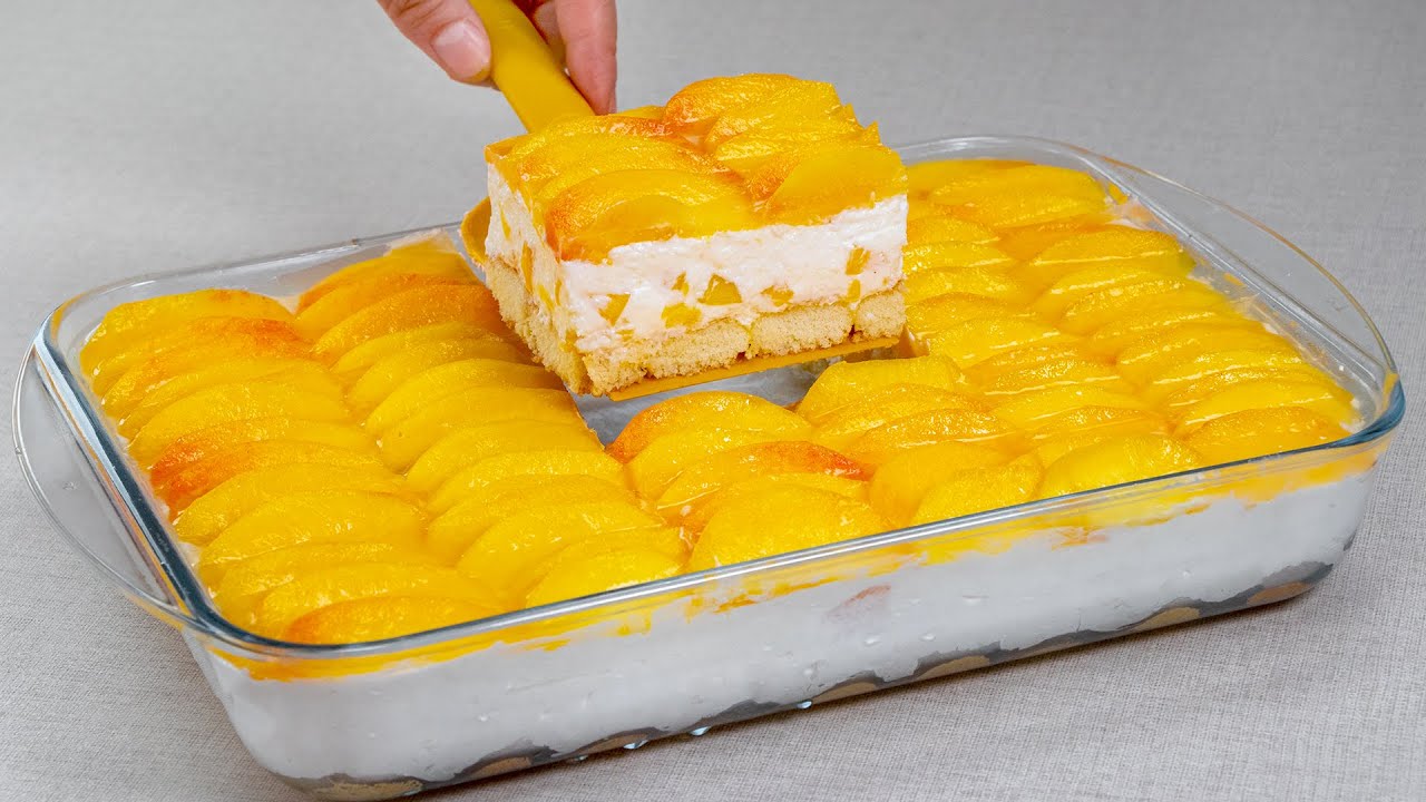Prvo piskote umocite u mlijeko i poredajte u vatrostalnu posudu. Slatku pavlaku umutite sa secerom u prahu pa dodajte sitno sjeckane breskve kojima ste vec ogulili kozicu.
