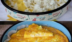 U nekoj malo većoj posudi razbijte jaja, dodajte so i ulije mlijeko ili vrhnje. Smjesu dobro umutite i mutite sve dok ne postane glatka i blago pjenasta. Cilj je da se bjelanjci i žumanca potpuno sjedine, bez vidljivih tragova neizmiješanog jajeta. Dobro umućena smjesa osigurava da pita tokom pečenja lijepo naraste i ostane mekana.