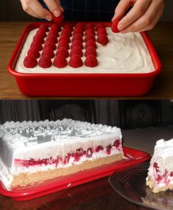 Poslije sloja kreme, ravnomjerno rasporedite 500 grama malina. Ukoliko koristite zamrznute, nije ih potrebno prethodno odmrzavati. One će otpustiti svoj sok tokom hlađenja, što dodatno obogaćuje strukturu i ukus torte. Ako želite intenzivniji voćni efekat, možete ih lagano izgnječiti prije nanošenja.
