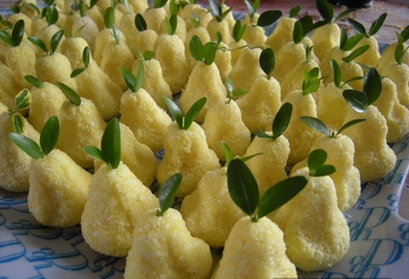 svaku kruskicu ukrasite sa dva lisitica simsira.