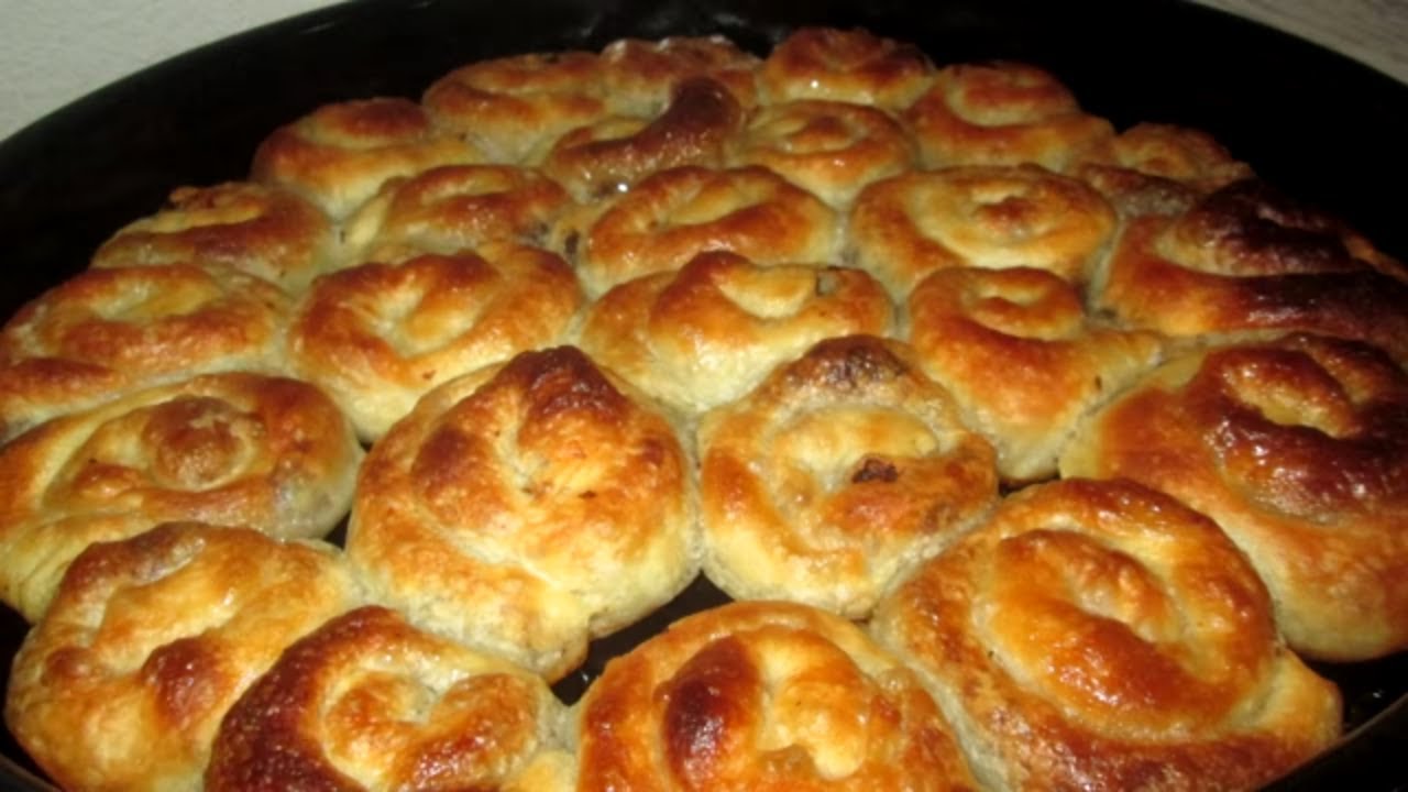 Prvo umijesite tijesto od navedenih sastojaka i ostavite da odstoji. Dok odmara pripremite nadjev a nakon toga razvijte jufku i rasporedite nadjev a onda zarolajte.