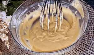 U zdjeli izmiksajte jaje sa šećerom i mutite sve dok ne dobijete finu pjenušavu smjesu. U smjesu zatim dodajte ulje pa opet malo izmiješajte kratko tek toliko da se sastojci pomiješaju. U smjesu dalje dodajte jogurt i mlijeko i sve dobro izmiksajte kako bi se sastojci dobro povezali. Brašno i prašak za pecivo je potrebno prvo prosijati a zatim dodati u smjesu neprestano miješajući dok tijesto ne postane glatko. Konzistencija bi trebala biti znatno gušća od klasičnog tijesta za palačinke, slična kremi.