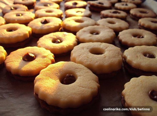 Za fil izmiksajte maslac i secer u prhu na kraju mu priimijesajte otopljenu cokoladu pa pdmah filujte na svaki keksic po pola kasicice fila.