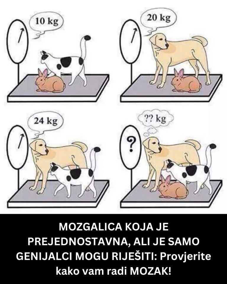 Sada cemo vam postaviti jedno pitanje da izracunate koliko su zajedno teski pas,zec i macka: koji je vas konacan odgovor.