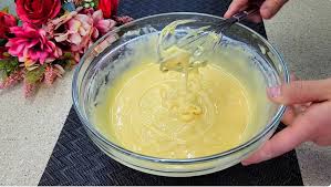 U nekoj malo vecoj posudi razbijte troje jaja, dodajte šećer i prstohvat soli. Sve se dobro izmiksa ručno ili električnim mikserom dok smjesa ne postane svijetla i pjenasta. Potom se u smjesu polako ulijeva biljno ulje i mlijeko, sve vrijeme lagano miješajući.