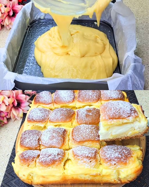 Kada krenete slagati polovina tijesta se ravnomjerno rasporedi po dnu pripremljenog kalupa. Na to se pažljivo nanosi nadjev, ostavljajući mali razmak do rubova. Na kraju se ostatak tijesta izlije preko nadjeva i sve se lagano poravna.