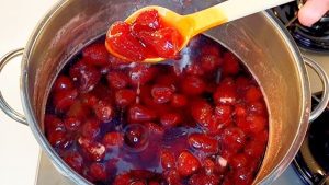 U toku kuhanja, redovno skidajte pjenu koja se formira na vrhu. To je važno kako bi sirup bio što bistriji. S obzirom da je cilj očuvati oblik jagoda, nemojte previše mešati smesu. Ostavite plodove da se postepeno stope sa sirupom.