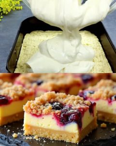 Kada su obje smjese spremne, snijeg od bjelanaca se pažljivo, uz lagano miješanje špatulom, umiješa u krem sir. Miješanje radite sa špatulom lagano kako vam bjelanca ne bi spala. U tu pahuljastu masu dodaju se borovnice i ribizle, koje donose osvježavajuću kiselkastu notu i lijepu boju. Sve se lagano promiješa, a zatim se fil izlije preko već podpečene kore. Površina se poravna kako bi kolač imao lijep i uredan izgled.