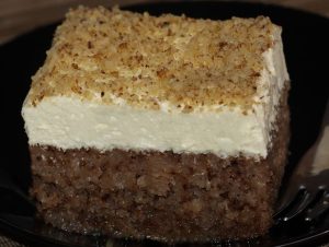 Onda se dodaju suhi sastojci:tojci: brašno, griz i prašak za pecivo. Mešavina se ujednačava dok se ne dobije gusta, ali tečna smesa, pogodna za sipanje u kalup. Veličina preporučenog kalupa iznosi 20 x 35 cm. Pre nego što se smesa izlije, kalup je potrebno podmazati i posuti brašnom kako se kolač ne bi lepio tokom pečenja. Pecite u vec zagrijanoj rerni na 180 stupnjeva oko 30 minuta ili dok površina ne poprimi zlatno-smeđu boju, a unutrašnjost ostane sočna, ali pečena.