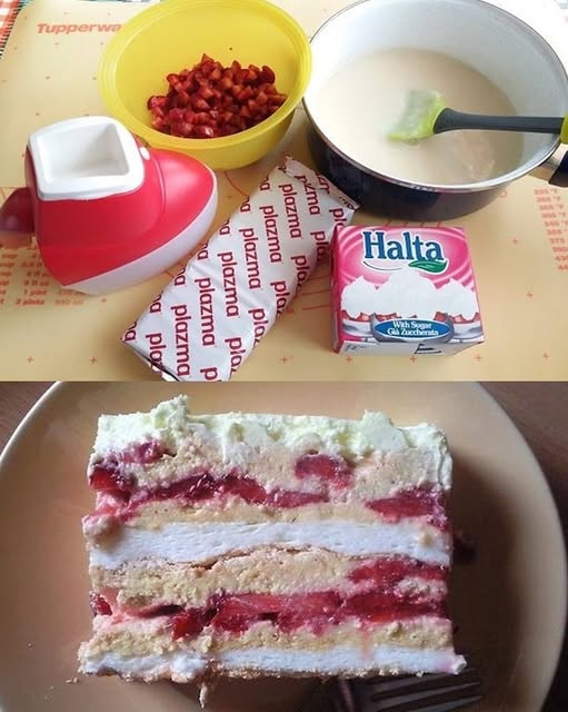 Zatim se preko fila slažu sveže oprane i narezane jagode – one donose osvežavajuću notu i kontrast kremastim slojevima.