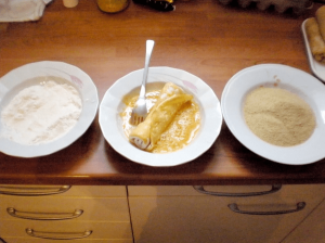 Kada ste završili sa rolanjem palačinke ispohujte ih na način da se palačinka uvalja u brašno, zatim umoči u umućena jaja, a na kraju se uvalja u prezle. Ovaj klasični trostruki sloj daje palačinki prepoznatljivu, zlatno-hrskavu koricu nakon prženja. Kada dođe vreme za prženje, zagrejte ulje u dubljoj tavi. Temperatura ne sme biti previsoka kako se pohana korica ne bi prebrzo ispržila i potamnela, a da sir unutra još nije stigao da se otopi. Prženje traje nekoliko minuta sa svake strane – dovoljno da korica postane zlatna, a nadjev se potpuno ugrije.