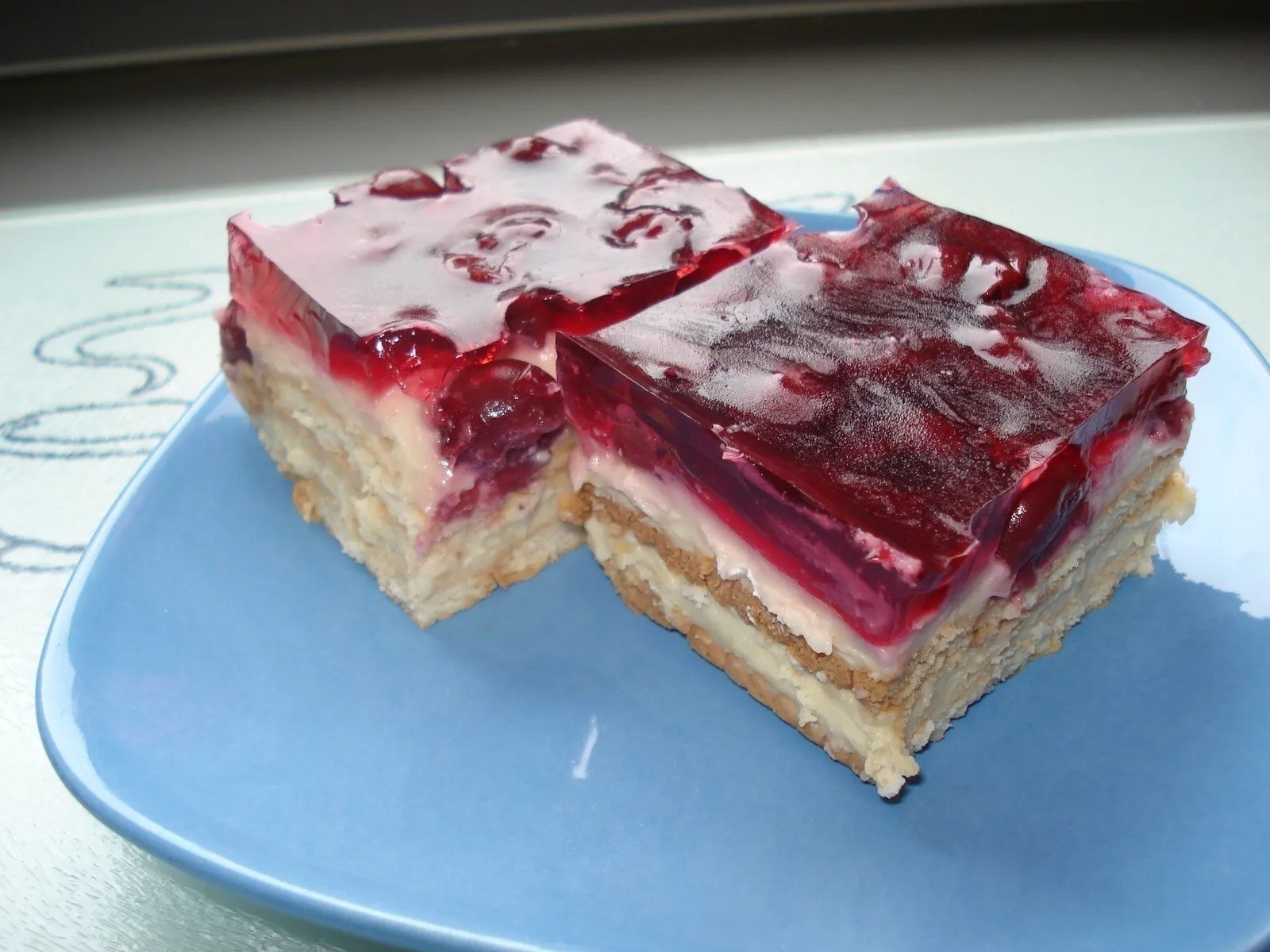 Po kremi pospite visnje i gore preliv za torte (može se i prvo skuhati preljev, pa u njega ubaciti višnje, te tako preliti kremu)