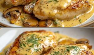 U istoj tavi, bez ispiranja da bi se sačuvali svi ukusni sokovi i karamelizirani ostaci od piletine, dodaje se još malo putera. Na njemu se prvo proprži sitno narezan crveni luk, otprilike tri minute, dok ne omekša i postane staklast. Zatim se dodaje sitno sjeckani bijeli luk, koji se kratko dinsta – ne više od jednog minuta, kako bi pustio aromu bez da zagori. Slijedi dodavanje narezanih svježih gljiva i jedne paprike, po mogućstvu u miješanoj boji radi vizuelnog efekta. Sve zajedno se dinsta oko pet do šest minuta, sve dok povrće ne omekša i ne počne puštati svoje sokove.
