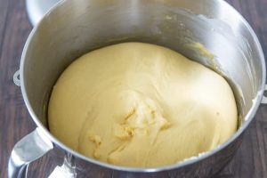 U veću zdjelu sjedinite mlijeko te mu dodajtesuvi kvasac. Ostavite smjesu da nabubri tj da se kvasac aktivira oko pet minuta, sve dok se na površini ne pojavi pena – znak da je kvasac počeo da deluje. Nakon što se aktivirao kvasac, u istu posudu dodaju se smeđi šećer, ulje, sirće, so i jaja. Sve sastojke treba temeljno sjediniti ručnom mutilicom ili mikserom s nastavcima za testo, kako bi se formirala homogena tečna masa. U ovom koraku, važno je da su svi sastojci sobne temperature, jer će se tako bolje povezati.