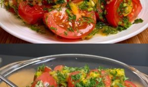 Važan deo procesa je vreme. Rajčice treba ostaviti da odstoje u hladnjaku najmanje dva do tri sata. Tokom tog vremena, kiseline i ulje iz marinade omekšavaju plodove, dok šećer i beli luk obogaćuju njihov prirodni ukus. Za najbolje rezultate, preporučuje se da jelo odstoji preko noći – što duže marinada ima vremena da deluje, to će salata biti bogatija i intenzivnija.