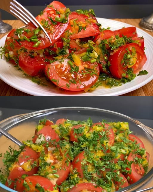 Kada je sve spremno, salata se može poslužiti kao osvežavajuće predjelo, idealno za letnje dane kada teška jela nisu poželjna. Osim toga, odlično se slaže uz meso s roštilja, ribu, ili kao deo bogatog švedskog stola. Bez obzira na to da li je servirate hladnu ili na sobnoj temperaturi, ova marinirana salata osvaja svojim kontrastom između sočnih rajčica i začinjene, lagano kisele marinade.