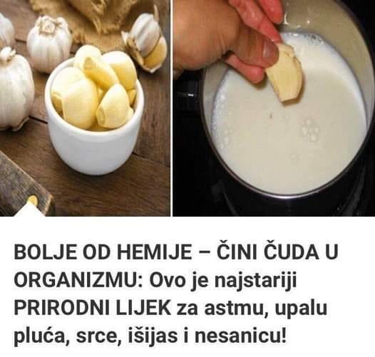 Bijeli luk ogulite i isjecite te stavite u serpu sa vodom i mlijekom.