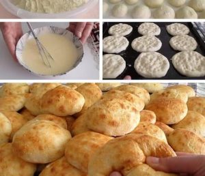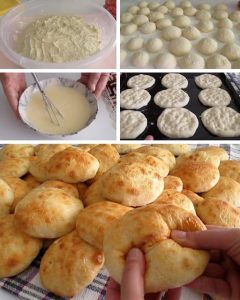 Formirane kugliceodmah redajte na pleh koji te prethodno obliili papirom za pečenje. Važno je ostaviti malo razmaka između njih jer će narasti tokom pečenja. Svaka kuglica se zatim blago pritisne prstima kako bi dobila spljošteni, okrugli oblik. Kada ste poredali hljebčiće potrebno je da ih premažete sa smjesom od žumanca, jogurta i vode.