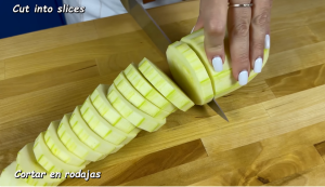 Prvo zagrijte rernu na 180 stupnjeva pa onda pocnite sa pripremom jela. Operite i ogulite tikvice pa ih isijecite na kolutice srednje velicine.