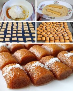 Kada se postigne idealna konzistencija, prelazi se na sledeći korak – formiranje oblika kolačića. Od pripremljenog tijesta odvajaju se komadi veličine većeg oraha. Svaki od ovih komadića zatim se oblikuje u valjke debljine jednog prsta. Da bi kolačići tokom pečenja dobili laganu koricu i dodatnu teksturu, svaki valjak se uvalja u griz.
