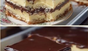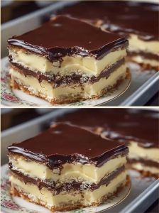 Na samom vrhu ponovo slažite red keksa, koji predstavlja podlogu za završni čokoladni sloj. Čokoladna glazura se zagrijava ili priprema prema uputama, a zatim se izliva preko kolača i lagano razmazuje špatulom ili nožem kako bi se dobio ujednačen, sjajan premaz. Ovaj sloj ne služi samo kao dekoracija, već daje i snažan kontrast slatkoj, blagoj kremi od vanilije.