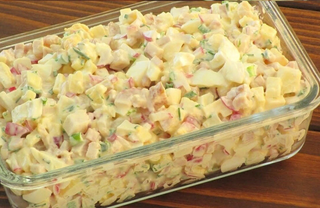 Kada prođe vreme hlađenja, proverite salatu. Možete je ponovo začiniti po ukusu, dodajući još soli, bibera ili malo senfa ako želite da pojačate ukuse. Ova salata je spremna da se poslužite kao osvežavajući obrok ili kao prilog uz druge jela.