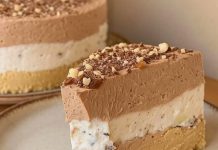U drugoj posudi pomiješajte ricotta sir i šećer u prahu. Miješajte dok ne dobijete glatku i kremastu smjesu. Ricotta će ovoj smjesi dati finu, laganu teksturu koja će odlično upotpuniti bogatstvo keksa i Nutelle. Zatim dodajte vrhnje za šlag. U ovu smjesu dodajte 30 g kokosovog brašna i lagano promiješajte. Kokosovo brašno će dodati blagu teksturu i okus koji se odlično slaže s kremastom bazom. Ovu smjesu ravnomjerno rasporedite preko keksne podloge u plehu.