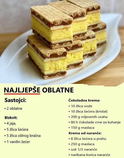 – Biskvit se zatim pokrije jednom oblatnom tako da strana sa čokoladnom kremom bude okrenuta prema biskvitu.