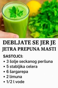 Ovaj fantasticni prirodni napitak se konzumira u okviru kratkog, ali snažnog detoks tretmana. Njegova snaga leži u kombinaciji limuna, peršuna i celera – biljaka koje su poznate po svojim blagotvornim dejstvima na organizam, a posebno na funkciju jetre.