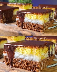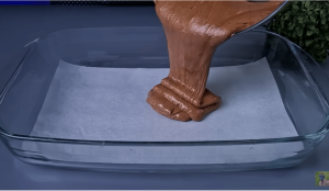 U pravougli kalup veličine 20×30 cm, prethodno nauljen ili obložen pek papirom prvo se ulije svijetla smjesa. Pažljivo se zatim nanosi tamna smjesa preko nje, stvarajući vizualno privlačne slojeve. Ovaj dio se stavlja u prethodno zagrijanu pećnicu i peče se oko 10 minuta, tek toliko da se smjesa učvrsti, ali zadrži svoju sočnost.
