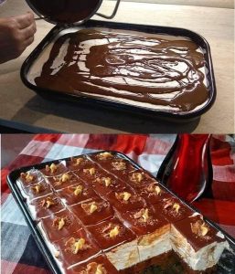 Na ohlađenu koru se pažljivo nanosi cijela količina kreme i poravnava se špatulom ili kašikom kako bi površina bila ravna. Posljednji korak je priprema glazure od mliječne čokolade, koja će dati završni sjaj i bogatstvo ukusa. Potrebni sastojci su: