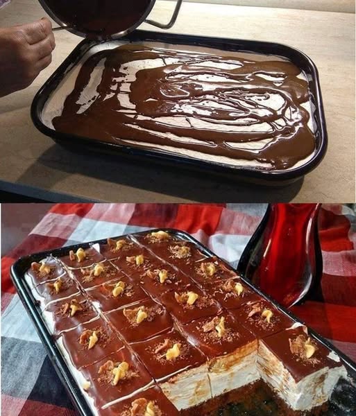 Nakon što se sve složi, kolaču je potrebno neko vrijeme da odstoji u frižideru, idealno nekoliko sati ili preko noći. Na taj način svi slojevi imaju priliku da se stegnu i prožmu ukuse, a glazura očvrsne kako bi se lakše rezala.
