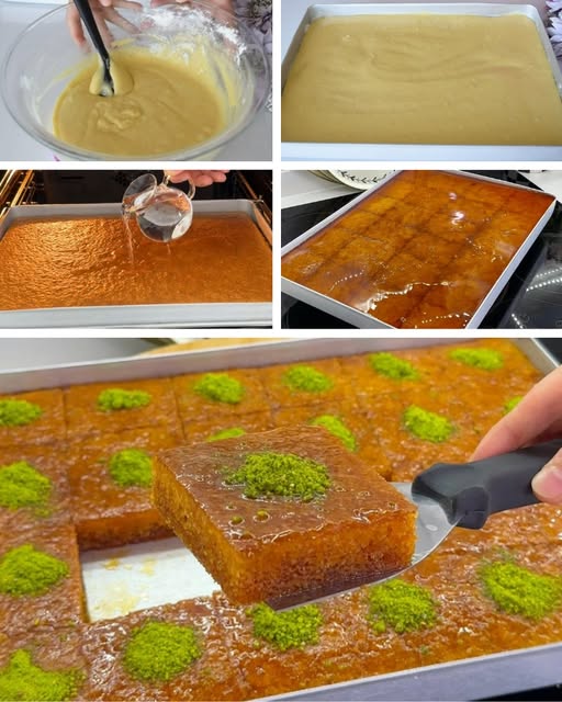 Prvo pravite biskvit.Sve počinje spajanjem jaja i šećera. Najbolje je da miksate mikserom kako bi se masa dobro zapjenila i postala svijetla i vazdušasta. To je najbitnije za mekanu i laganu teksturu biskvita. Kada se dobije takva konzistencija, dodaje se jogurt, koji dodatno omekšava tijesto i daje mu blagu kiselkastu notu, idealnu za balans sa šećerom iz šerbeta. Poseban doprinos aromi daje rendana korica limuna, koja unosi notu svježine i podiže ukus čitavog kolača. Da bi biskvit narastao i bio rahli, ubacuje se i soda bikarbona, a zatim, postepeno, brašno kako bi se dobila kompaktna, ali glatka smjesa bez grudvica.