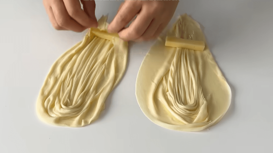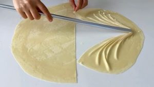 Svaki deo rastanjite i formirajte oblik po želji – najčešće se prave male rolnice, uvijene spirale ili savijeni oblici nalik kiflama.