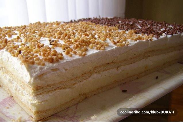 Dobro ohladite. U ohladjenu kuhanu kremu dodajte izradjeni maslac i izmiksajte u glatku kremu. Slag napravite posebno.