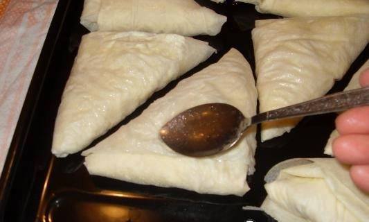 Nakon što ste pripremili sve kore, vrijeme je da ih oblikujete u trokute. Uzmite svaku koru i nježno je savijte u oblik trokuta. Za to ćete jednostavno uzimati jedan kut kora i preklapati ga prema sredini, ponavljajući postupak sve dok ne formirate savršen trokutasti oblik. Ovaj postupak je važan jer osigurava da nadjev bude ravnomjerno raspoređen unutar svakog trokuta. Kad ste završili s oblikovanjem, stavite trokute u prethodno pripremljeni pleh ili na ploču za pečenje. Kada su svi trokuti spremni, preostali sir možete staviti na vrh svakog trokuta, čime ćete dodatno obogatiti okus pite. Pecite ih u unaprijed zagrijanoj pećnici na 200°C oko 10-15 minuta, ili dok ne dobiju lijepu zlatno-smeđu boju. Ako imate peć na drva, možete uživati u pečenju na tradicionalniji način, koji će dodati posebnu aromu ovoj jednostavnoj piti.