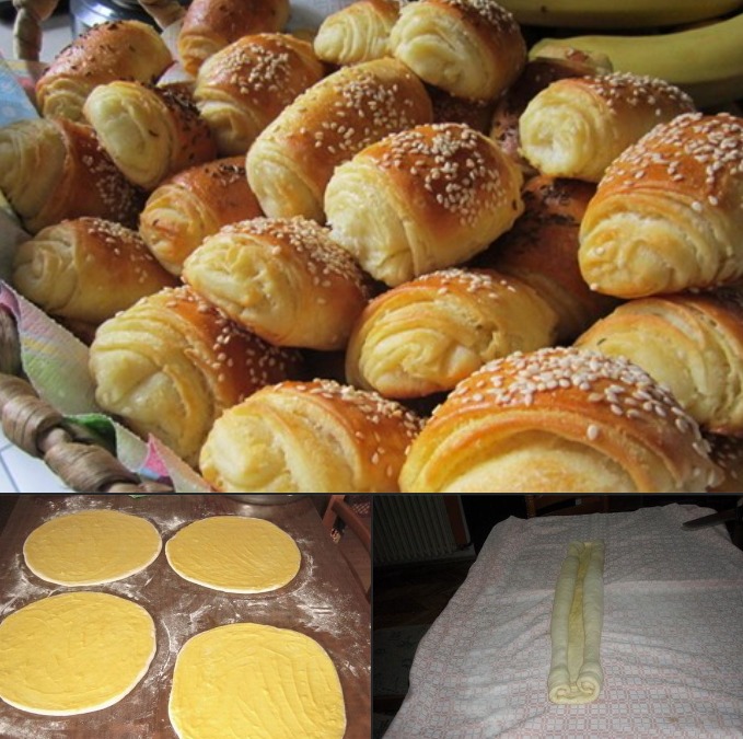 Svaku rolnu isijecite poprecno na jednake dijelove i redajte u pleh. Ostavite da narastu i premazite umucenim jajestom i pospite sjemenkama po zelji. Zagrijte rernu na 180 stupnejva i pecite dok fino ne porumeni. Postupak ponovite i sa drugim dijelom tijesta.