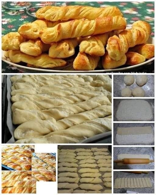 Rezite po duzini na stapice,uvrnite ih i stavite u tepsiju. Poslazite ih u namazanu tepsiju ili na papir za pecenje i pustite jos malo da se dignu.