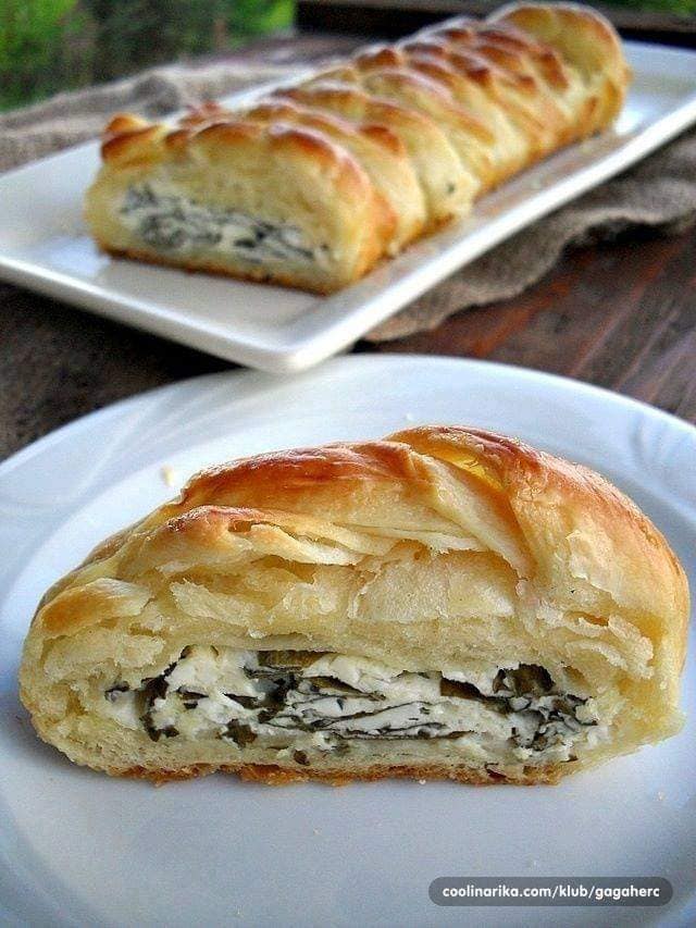 kada je tijesto odmorilo rezvaljate ga u pravougaonik i punite sa nadjevom ali samo po sredini.