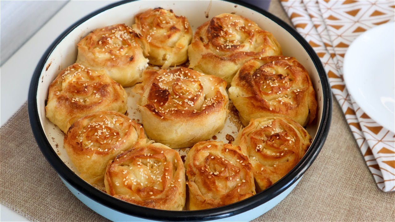 Mazite tri kore ovim prelivom,na trecu sir,urolajte i isijecite male puzice.