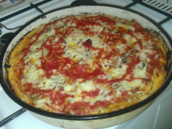 Onda tijesto odmah razvaljajte na pobrasnjenoj podlozi pa stavite u pleh. Filujte po svom ukusu.