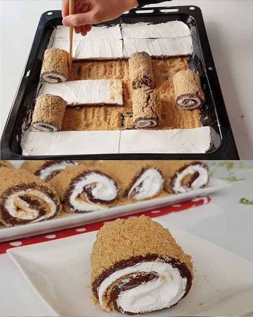 Poslije hladjenja izvadite desert iz kalupa, isecite ga na jednake komade i svaki komad obilno pospite sa preostalih 100 grama mlevenih lešnika.Ako zelite jos vise da odusevite svoje goste možete pripremiti i karamelizirane lešnike. Njima dekorativno ukrasite vrh svakog rolata, čime dobijate ne samo vizuelno atraktivan izgled, već i dodatnu dimenziju ukusa.