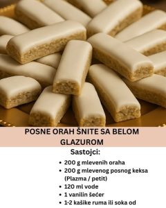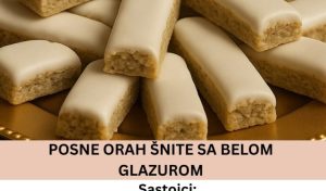 Naredni korak je priprema bijele glazure. Ova glazura je jednostavna, ali izuzetno efektna. Mešaju se šećer u prahu i limunov sok ili voda dok se ne dobije gusta, homogena smesa koja se lako razmazuje. Ako se želi lep sjaj, dodaje se svega kap-dve ulja. Čim je glazura glatka, nanosi se preko već formirane smese u plehu, ravnomerno i nežno, kako bi površina bila ujednačena.