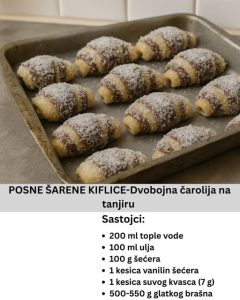Dok su još vruće, kiflice se tanko premažu posnim margarinom. Taj korak im daje sjaj i dodatnu mekoću. Za kraj, kiflice se uvaljaju u kokos, što im daje prepoznatljiv izgled i laganu egzotičnu aromu.