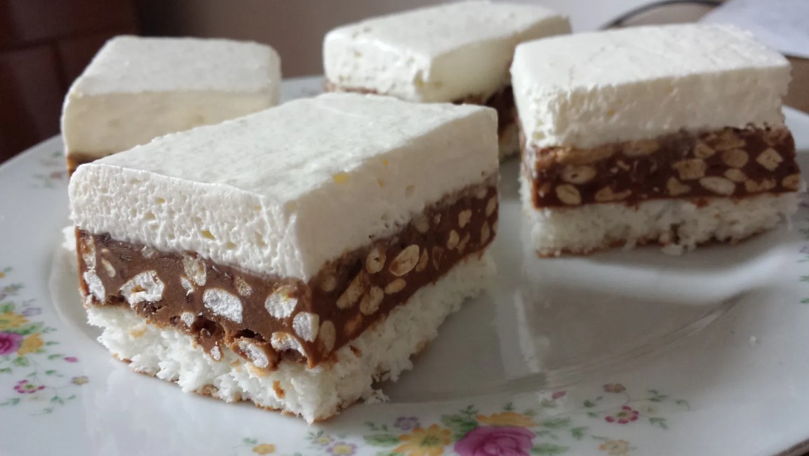 Prvo pripremite biskvit na nacin da istucete bjelance sa secerom. Dodajte kokos,brasno,ocat i lagano izmijesajte mikserom.